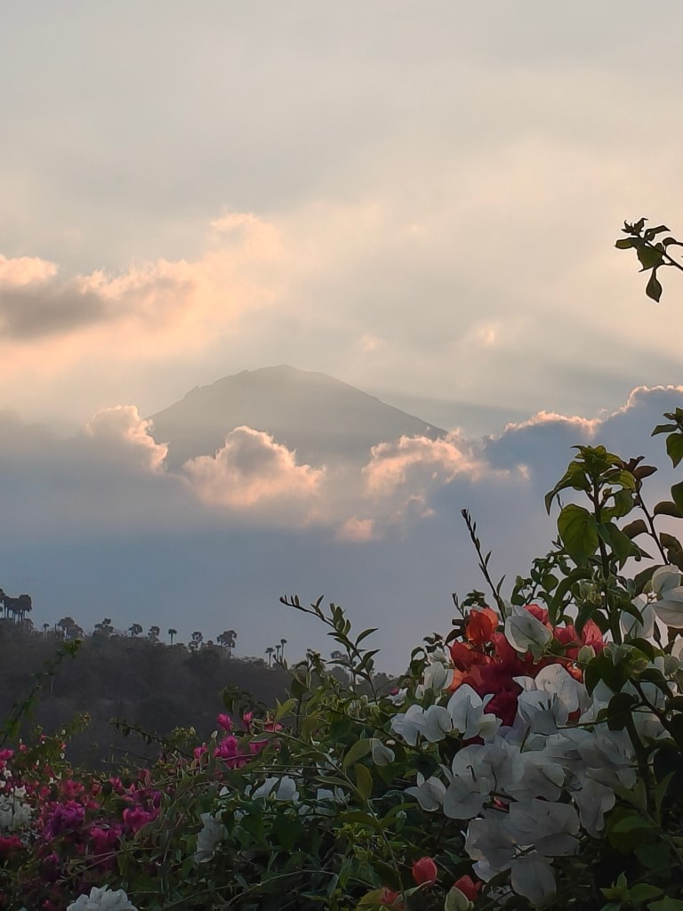 Although it was very cloudy, Mount Agung frequently appeared, and it remains a beautiful sight.