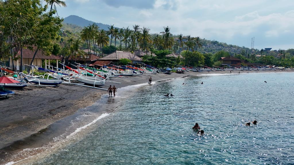 Amed is not known for a nice beach, the sand is black and darker than in Lovina, not really clean and there are lots of stones and pebbles.