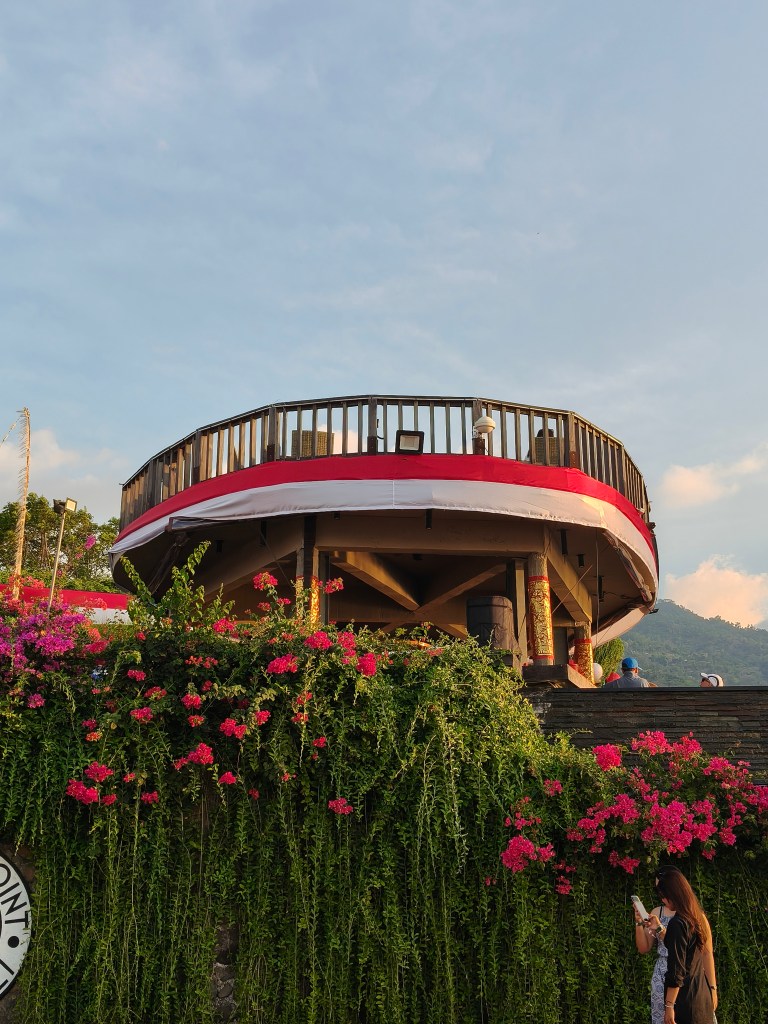 This is a fairly large complex, a beach club without a beach because it’s perched on a cliff. There’s a large parking lot for cars, and you have to register, or at least indicate what you want. There’s a buffet BBQ option, which we didn’t do because we came for the sunset. The entrance fee was IDR 150,000 per person, but the drinks are included. There’s an infinity pool and VIP terraces, all very luxurious.