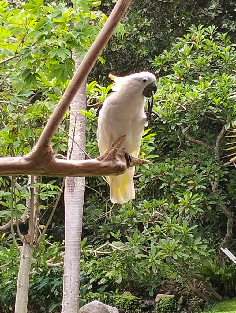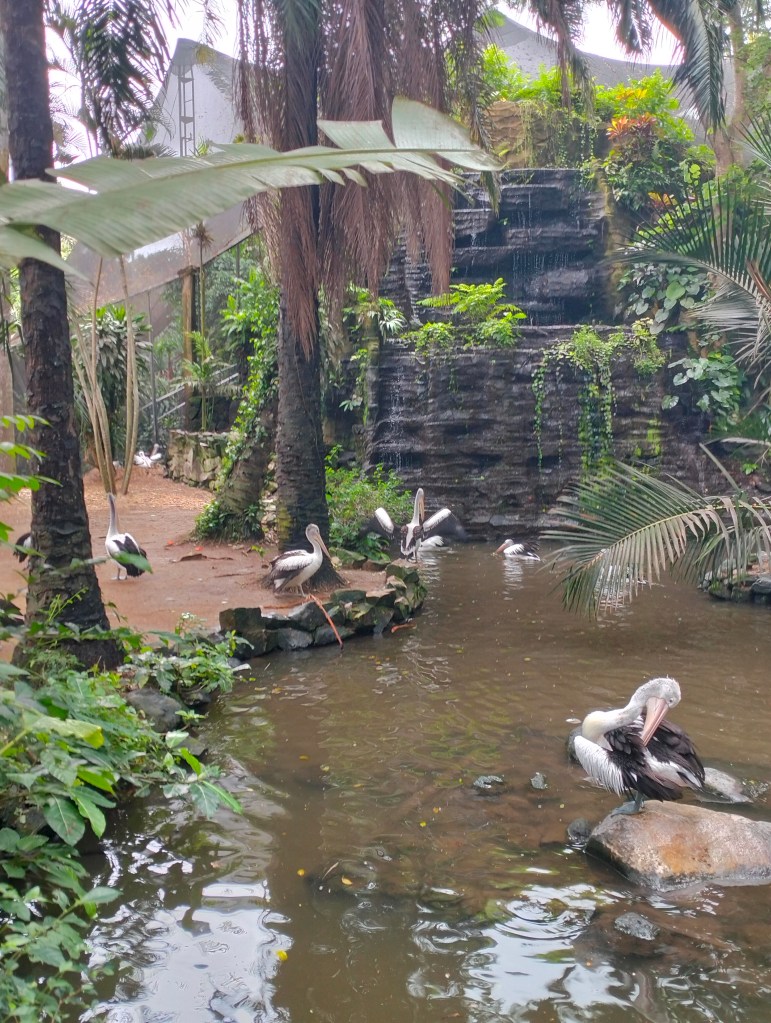 It is a beautifully landscaped park and they advertise with “the birds of paradise”, lots of parrots and cockatoos sitting in a tree, there is a small building that is a kind of incubator with newly born birds and you basically just follow the path, the cages are spacious, there are signs explaining which birds are in the cage.