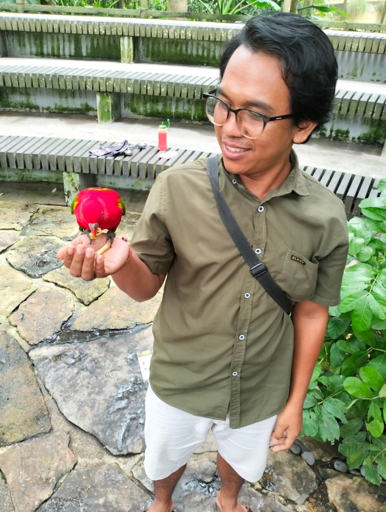 The Bali Bird Park is 2000 m2 and has 250 different bird species, there are bird shows and you can have your picture taken with the parrots on your shoulder, all very fun for children. You basically follow the signs and you go from island to island, birds that are specific to those islands in Indonesia.