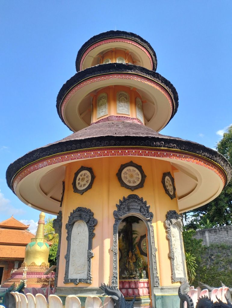 It is the largest Buddhist temple on Bali, in Bali they call it the “Brahma Vihara Arama”, it was built in 1969 and has been fully renovated in the last few years. From the temple there is a beautiful view over coastal strip of the north of Bali. The temple is built according to Balinese architecture but by the many statues and details it is really a Buddhist Temple.