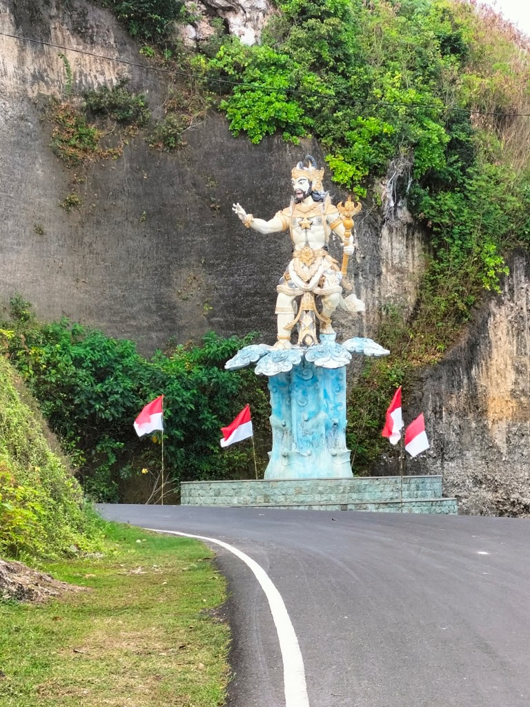 Despite the fact that the entrance is impressive, the beach is a bit disappointing and maybe that is also a reason why you don’t see many tourists here. Then to the other side of the beach and that actually looks the same, a large parking lot, several souvenir shops and warungs.