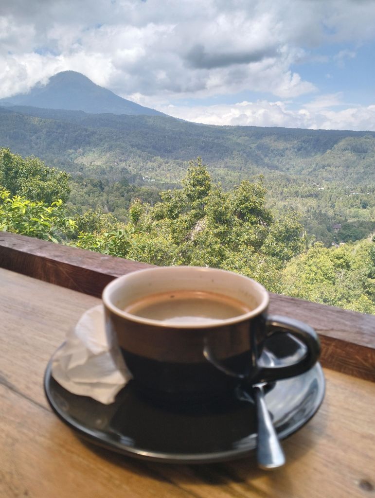 This cafe focusses on coffee, using the beans from the Bali Mountain Women’s Coffee Cooperative and the coffee is outstanding. A good menu of fair priced Balinese food is also available (you can find it on Google). The cafe has a simple but nice atmosphere and the food and coffee are top-notch.