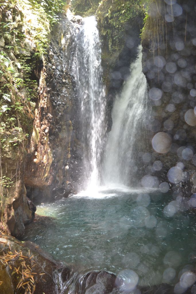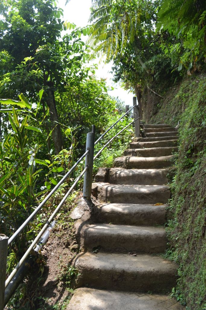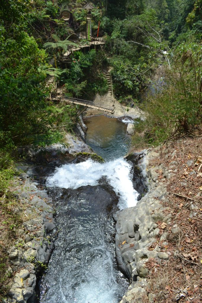 The Twin Waterfall of Gitgit is located higher than the earlier mentioned waterfall, here you park the car along the road for IDR 5.000 and the entrance fee is IDR 20.000, from there you walk to the start of the path which goes down steeply, also here many stairs, there is a handrail but it is not really a solid one.