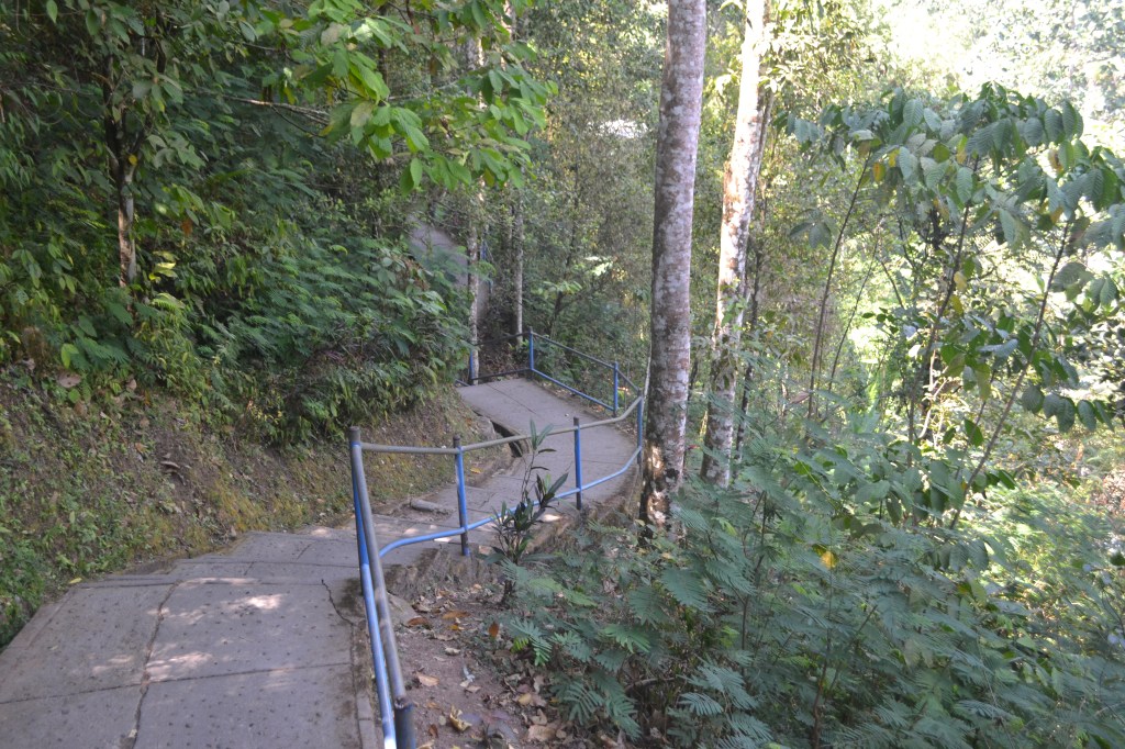 The waterfall is located much deeper in a kind of valley surrounded by big trees and beautiful flowers. You walk on a concrete path and this is easy to do, there are also some stairs. Along the path there are many shops that are surprisingly well-stocked with merchandise and hearing the same question (if you want to buy something) can be a bit annoying, on the other hand these people live here and are also trying to make a business and earn some money and tourists do come here. An advantage of their presence is that they also have the task of keeping the area clean and it is surprising to see how clean it is.
