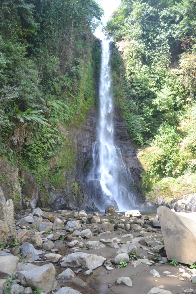 Despite the presence of the shops, it is a nice walk and you eventually arrive at the waterfall and on the way you can already see the waterfall and when you come down the walk is also worth it. The Gitgit waterfall is 30 meter high. Once down, you actually walk to the end of the valley where the water falls down along the mountainside, the water then flows further away into a kind of river with many large rocks, it is a beautiful piece of nature, there is a temple, a gazebo and beautiful flowers grow there.