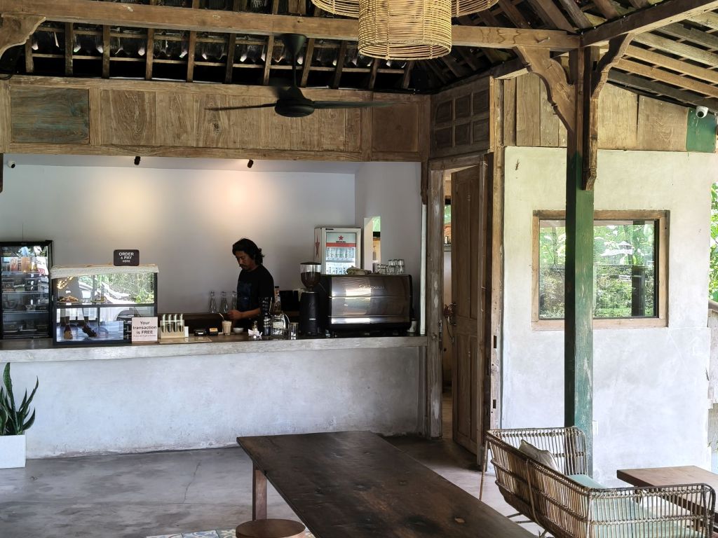 This coffee shop is on the same road as the Giri Ebikes office, click here for the exact location, a cozy-looking place with comfortable chairs, a beautiful view, and delicious coffee.