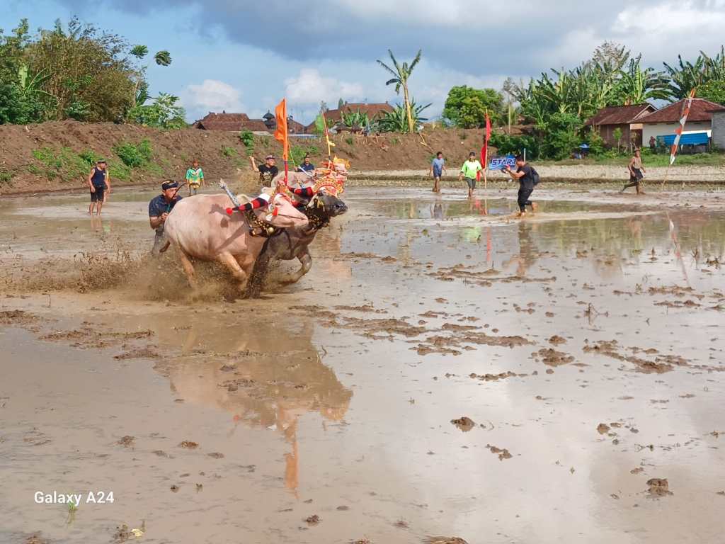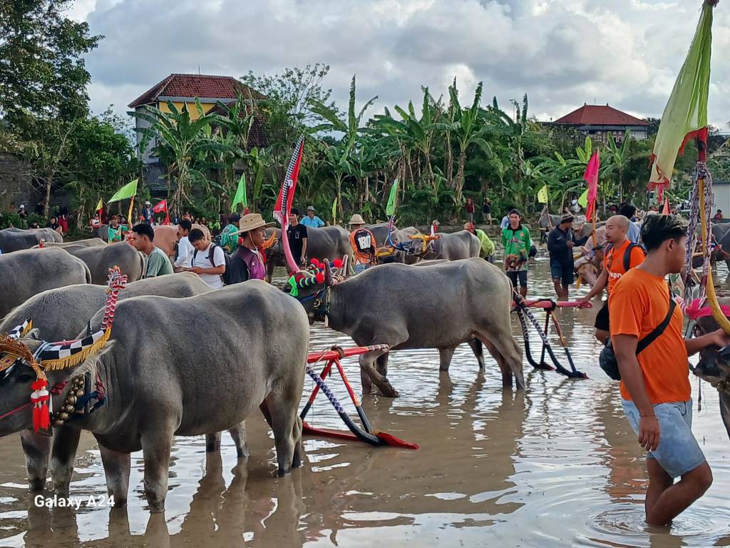 In west Bali, in the Jembrana region, traditional buffalo races are regularly held, these races are also known as the “makepung” races and the races date back more than 100 years ago. The buffalo jockeys take these races very seriously, during the event the buffalo are “dressed up” with decorations and bells, the jockeys pray for victory, it is a scene somewhat reminiscent of ancient Greece.