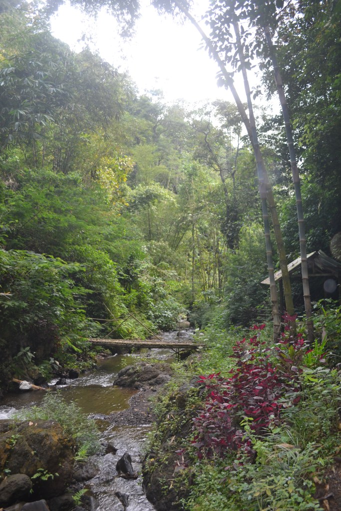 When you come up again from the Labuhan Kebo waterfall you can turn left and continue on the road, a bit further you find the Melanting waterfall, and this is a very tough one (especially when you have to go back up again) the stairs are bad, sometimes they are very small or the height difference is just too big to make a normal step, after a while you come to the place where you have to buy a ticket, here the entrance is IDR 10.000 (could be more now) and the further you go down the stairs the more beautiful it gets, you see the most beautiful flowers on the way and the nature is beautiful but there are also the necessary natural obstacles.