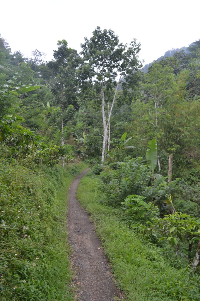 This waterfall is probably the most visited waterfall in the area because it is a relative easy one. The car can be parked on the car park from there you need to walk down the first part is abit steep but there are some stairs, after that it is a walk of 500 meters down via a good accessible path, mostly easy to do. It is a nice walk through the jungle, all kinds of flowers are growing here. In short, a wonderful hike and also the beautiful flowers are very much worth the effort. Entrance is IDR 45.000.