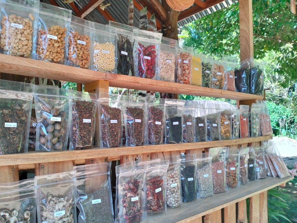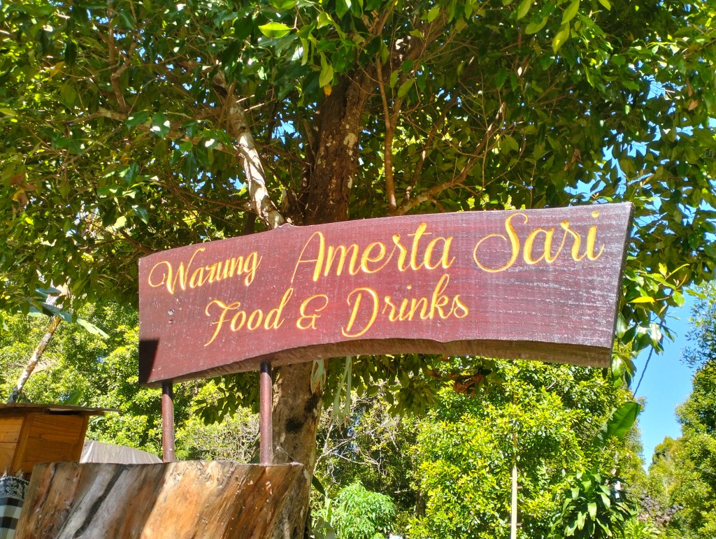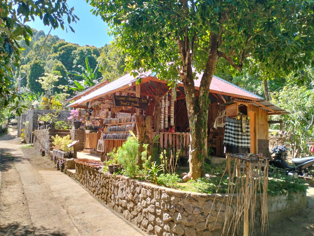 At some point you come to the junction and just follow the signs to Labuan Kebo and Melanting. You will also find a warung there which is actually a very nice place if you like to drink local coffee, or buy some herbs like vanilla, nutmeg, pepper, or when you want to buy special tea like Rosetta tea. The warung holds the name Warung Amerta Sari and worth a stop.