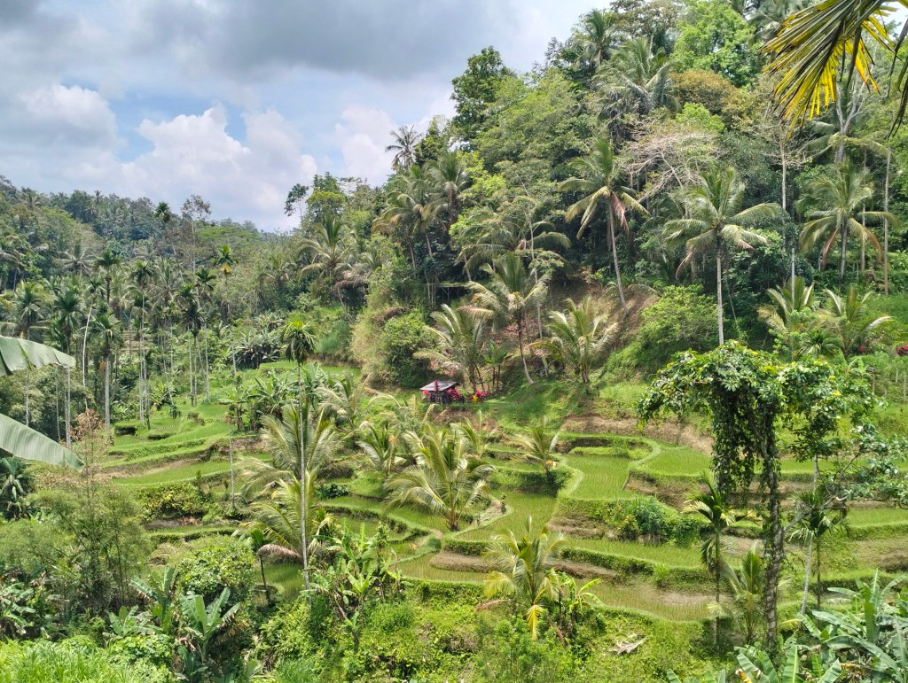 It is one of many on Bali and this is one is located in the village of Kedisan (Tegalalang) and these are not the famous terraces of Tegalalang but the Abian Desa rice terrace is located a bit more north. There are many warungs with a view over the rice fields where you can sit and have lunch or a drink. The actual entrance is one level up from the street level, there is a big parking place and the ticket office, the entrance fee is IDR 25.000. It can happen that the rice is harvested and obviously that will give a other look so here is a tip before you go : to make sure if the rice is growing, check on Google Maps and look for the most recent pictures, this way you can see how it looks.