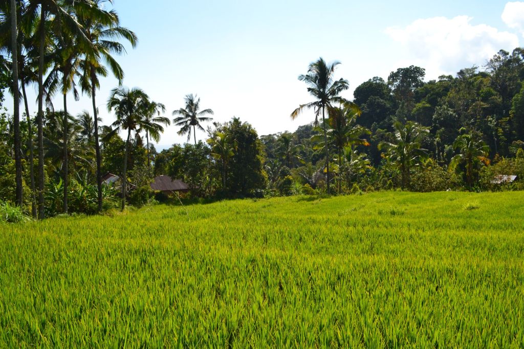 After a while you leave the forest and suddenly you are surrounded by rice fields and you walk in an area with a beautiful nature.