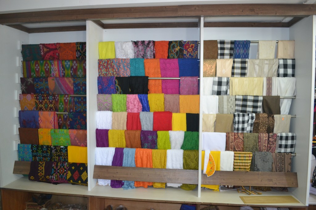 In Bali are many tailors, true artists sometimes, located in the village of Celuk Buluh on Jalan Arteriwico there is such a tailor, the shop is called UD Pas, where in addition to traditional clothing they also make other things such as curtains, bed cover, cushions, regular clothes etc. And when you want to get some new clothes, just bring an example, choose the fabric and they will make it for you all according to your wishes, when the fabric is not in stock they can order this.