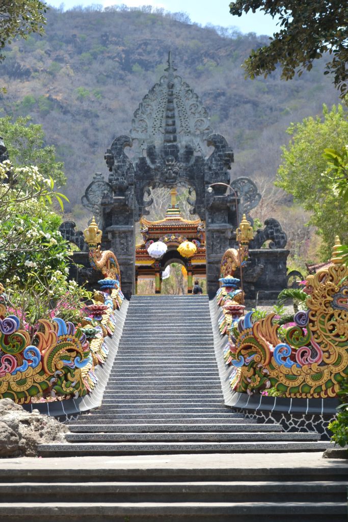 It is a beautiful temple and it is striking that all statues and temples have bright colours. The Melanting temple is one of the temples built to commemorate the visit of the Javanese Hindu priest, Danghyang Nirartha, who is also responsible for Pulaki, Rambut Siwi, Tanah Lot and Uluwatu temple according to the stories. The Melanting temple is considered the place where his eldest daughter, Ida Swabawa, changed into a ghost.
