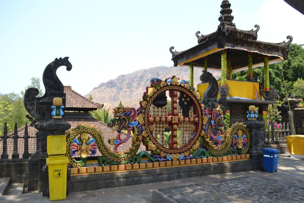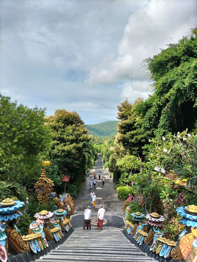 The priests, who take care of the temple, are very hospitable to visitors. The Hindus who come to pray in this temple come not only from this area, but from all over Bali and even from outside the island. Like mentioned earlier one of the special things about this temple are the colours. The statues and temples all have bright colours, it looks a bit Chinese, also look like the temples in Thailand. And what also stood out were the monkeys present in the temple and not only monkeys but also cats and dogs and here you don’t have to worry about the monkeys coming to sit on your head like in Ubud, because they are very shy.