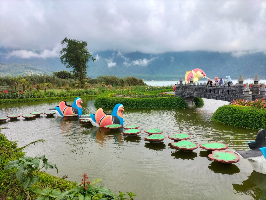 The park around it has now also been expanded because when you walk past the temple there is a playground with a pond and various places where you can take pictures and the people here like that so it is often very busy there. Quite a bit of catering has also been added, plenty of options to eat and drink. The whole area around the lake is getting a makeover, elsewhere they are busy with construction, you can also go on Lake Beratan with a boat or pedal boat.
