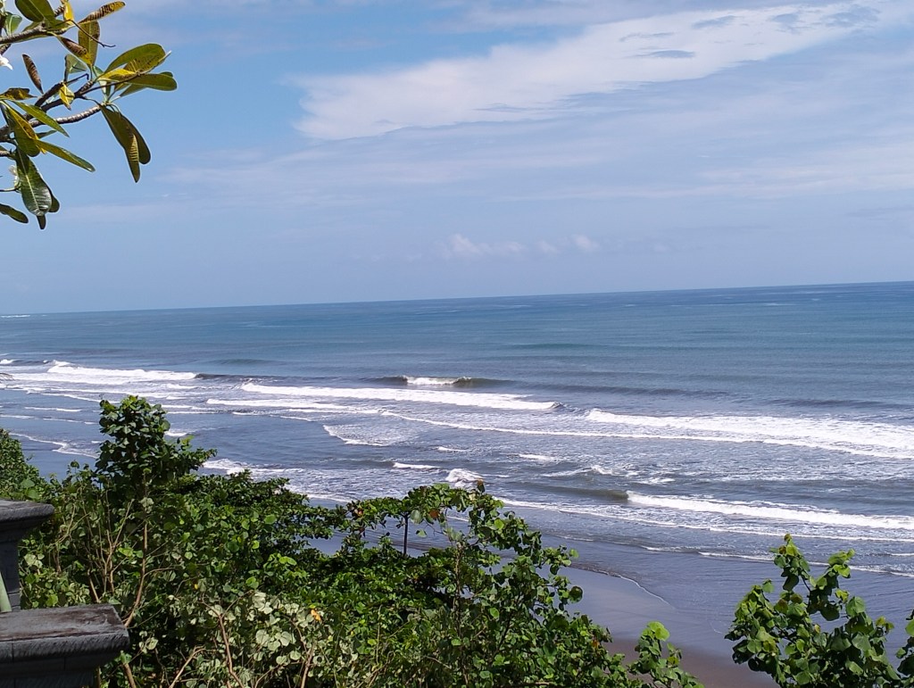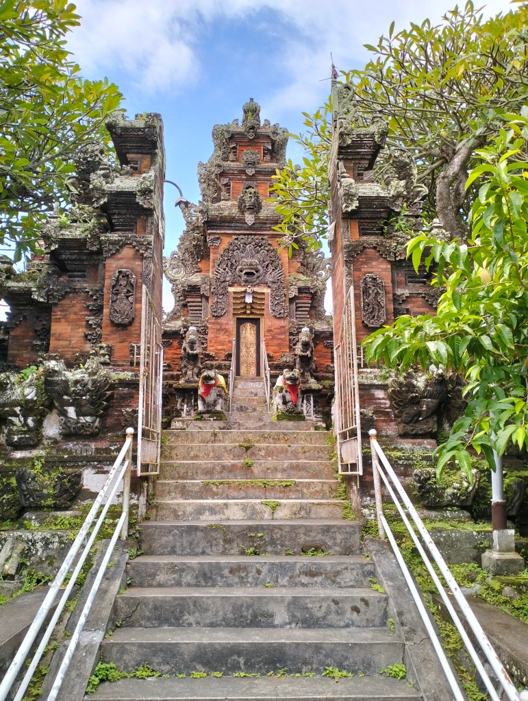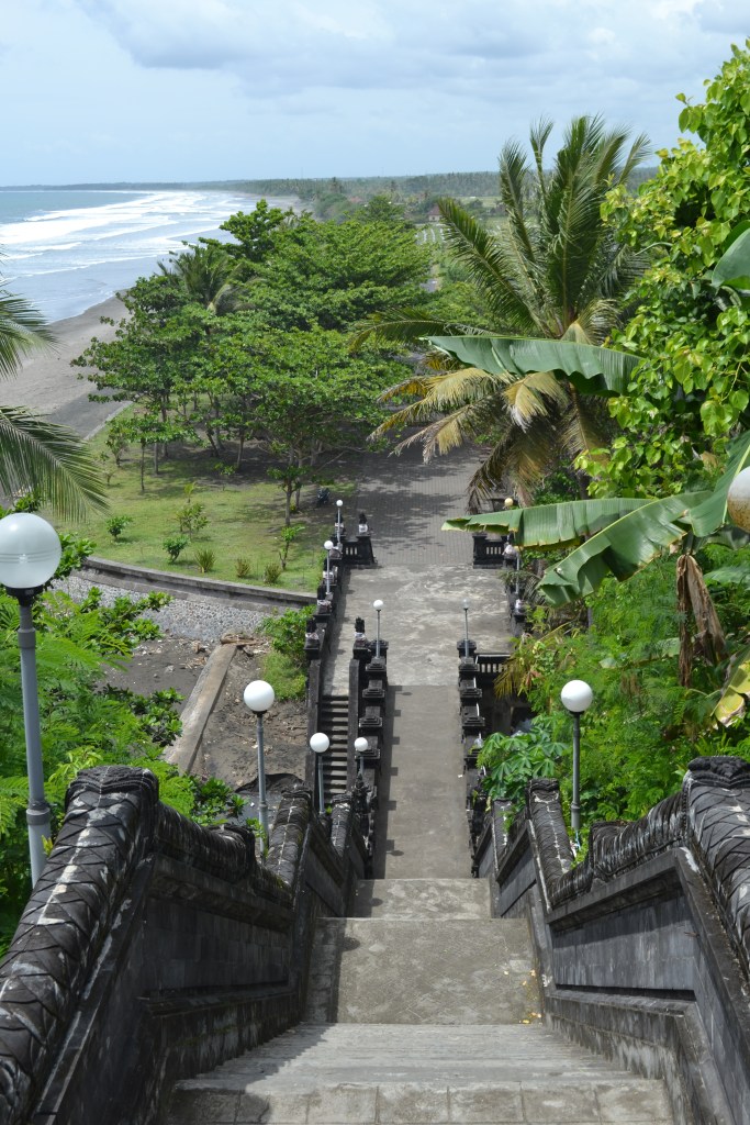 The temple is on a cliff and looks over the ocean, it is a beautiful view, the temple is such a peacefull place and on a beautiful location looking west you see the ocean and ricefields, the same for the east, looking south there is only ocean and looking north there are the mountains.