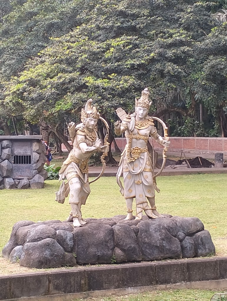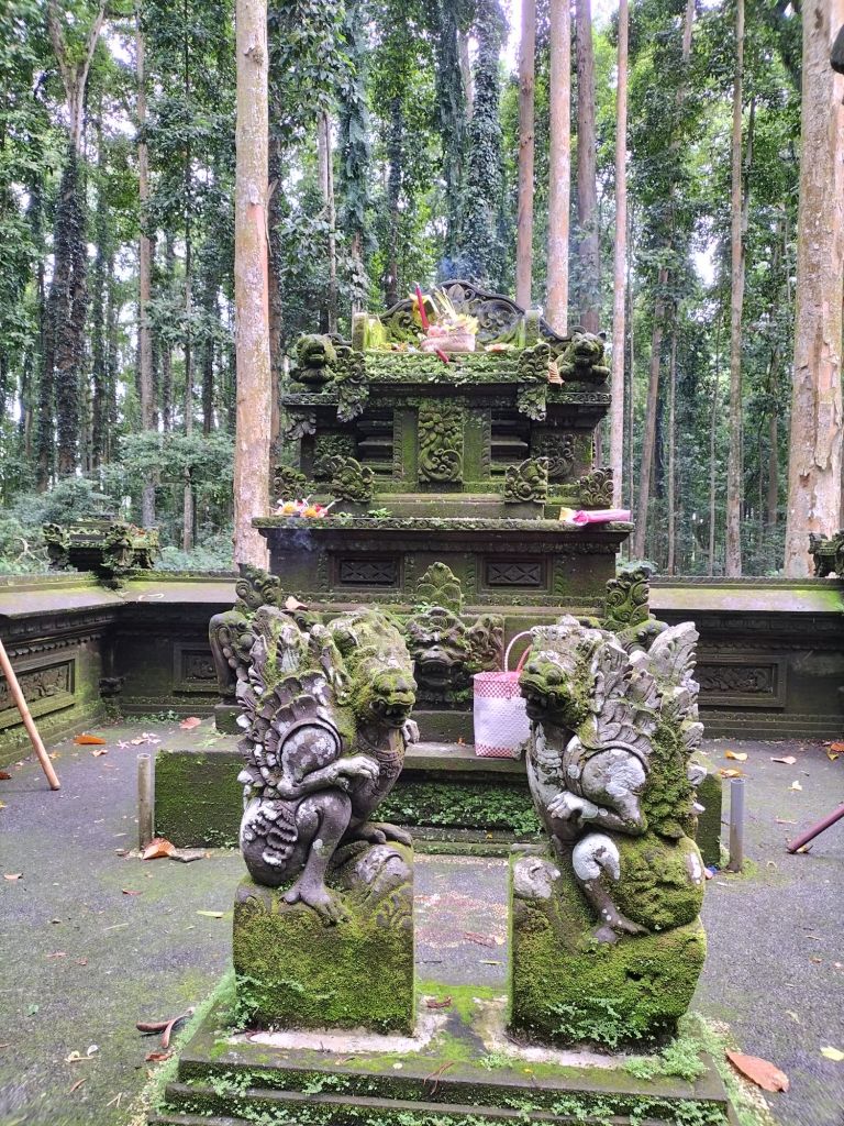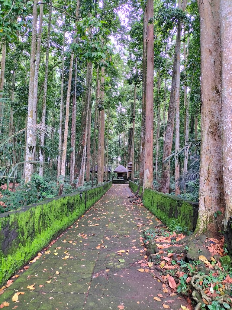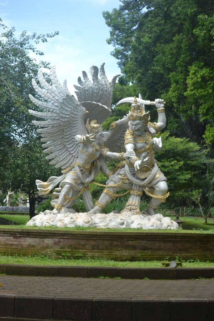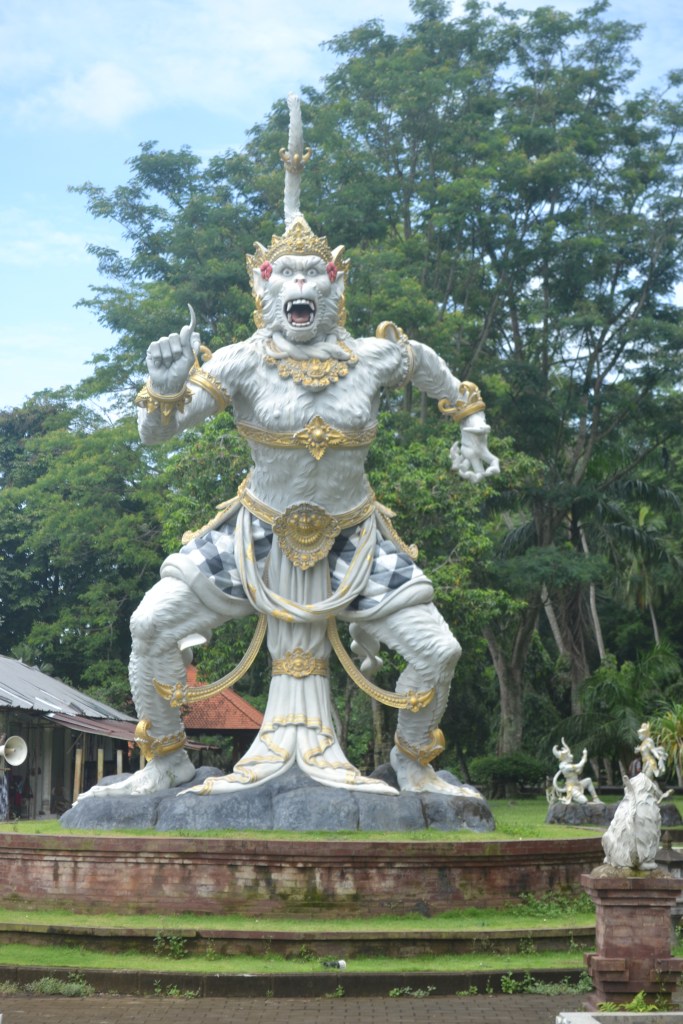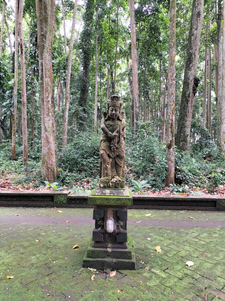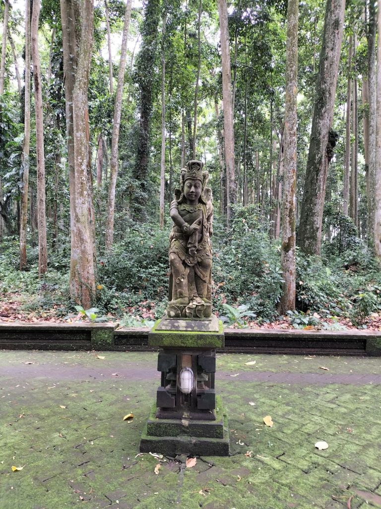 Then you walk out of the forest for a while and you come to a large open space, this is a kind of park with statues from the Balinese mythology, on the right picture it is Hanoman, according to Balinese stories, the king of the apes. You continue the path passing the statues and you walk back into the forest and you end up back on the same path going back to the main part where you entered.