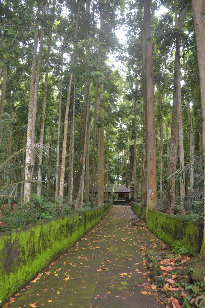 It is a forest of 6 hectares and there are gigantic nutmeg trees that can grow up to 40 meters high. The first part is a long trail to the Pura Bukit Sari, the temple in the heart of the forest dates back to the 17th century and was built as an agricultural temple, in the central courtyard is a large statue of Garuda, an ancient sculpture, symbolizing freedom from suffering and the attainment of Amerta, the elixir of life.