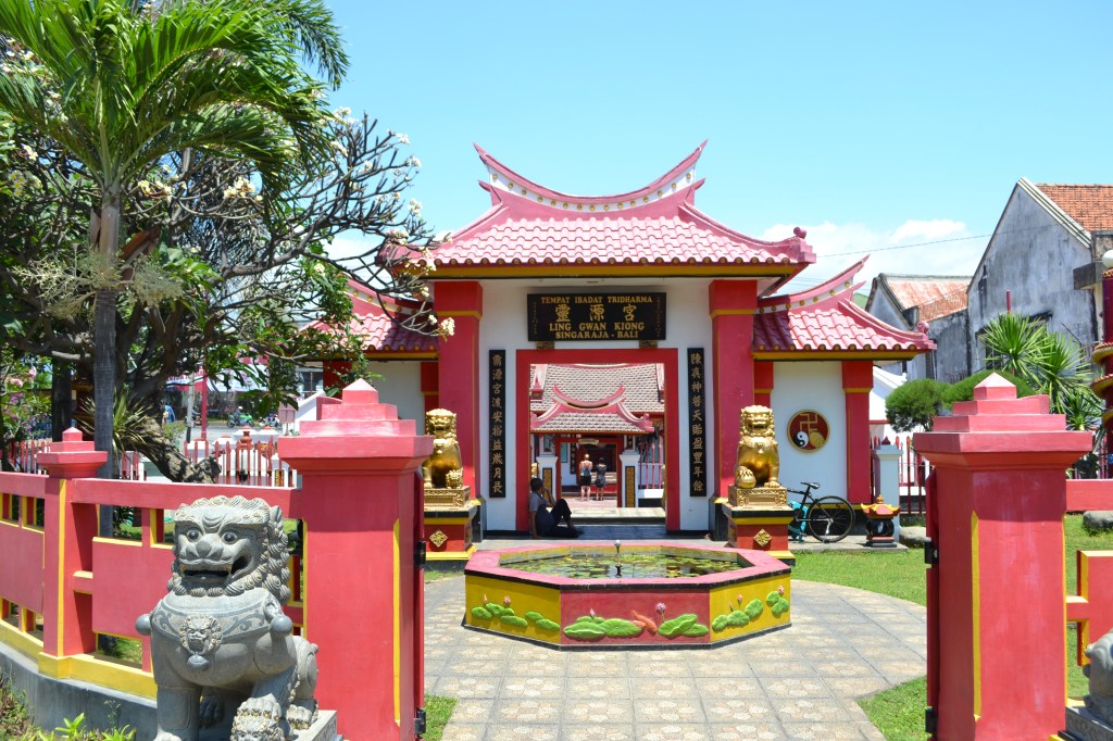 In addition to the many Hindu temples in Singaraja there is also a Chinese temple (klenteng) called Ling Gwan Kion, located close in front of the old harbour of Singaraja. The temple is one of the few Chinese temples on Bali. The temple was built in 1873 and renovated several times since that time, the last time in 2004. Entrance is free, but of course a donation will be appreciated.