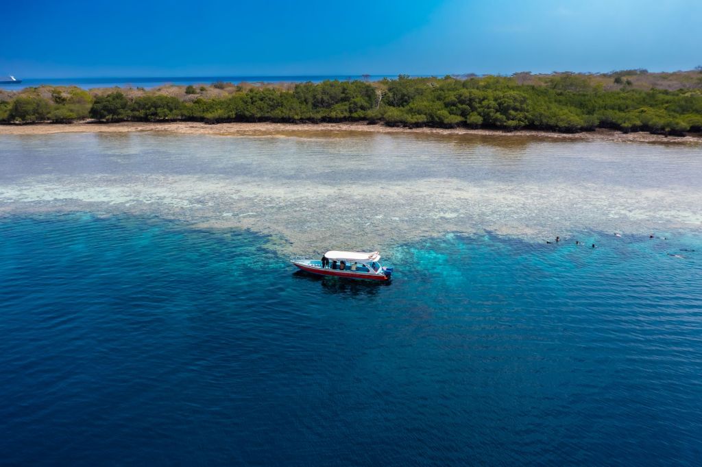The boat trip takes about 30 minutes and it also depends a bit on the weather and how high the waves are, but it is a nice trip along the coast to the snorkelling location, the snorkelling location does not always have to be the same because there are several options around Menjangan Island, the people often look at the circumstances of that moment where it is busy and where it is not.