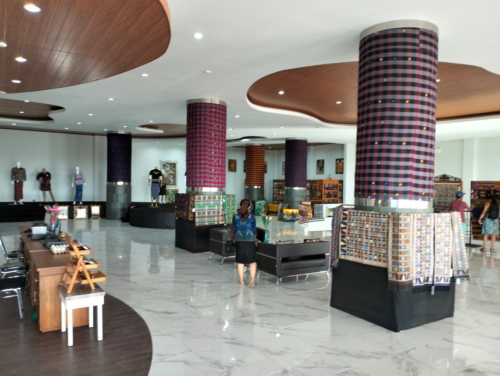 Here sarongs are woven in the traditional way (which will be demonstrated) and of high quality and the detail is in the different motifs and there is a lot of labour (one can only work on 1 sarong for 2 months) which is why the sarongs are quite expensive, such as those on the photo, IDR 7.000.000 (+/- 350 euro).