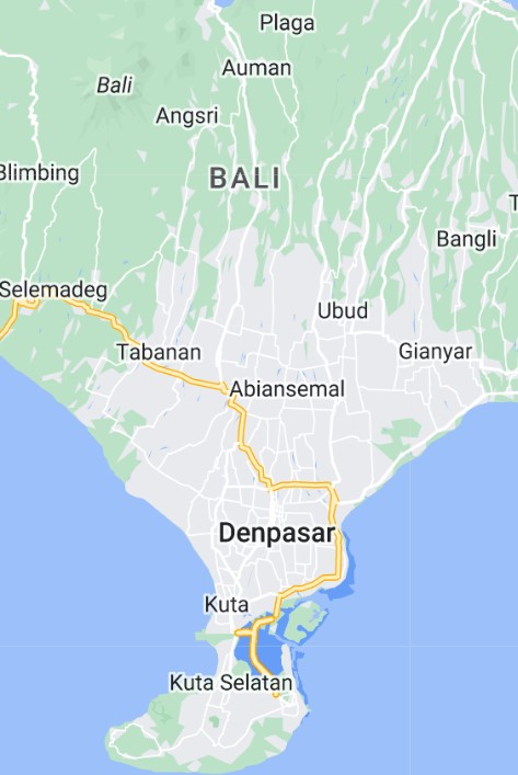 Most of the central part of Bali is located in the Tabanan region with Badung and Gianyar in the east, and Denpasar in the southeast, where Badung is going all the way south where all the famous tourist places are like Kuta, Legian, Seminyak and Canggu, in the west, Uluwatu in the south and Nusa Dua and Sanur more on the east side (and many more) which also are a part of Badung, with the exception of Sanur as that is part of Denpasar region.
